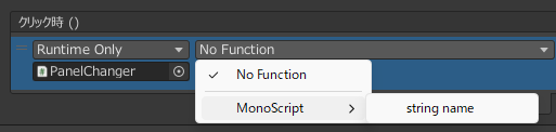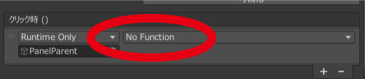 アタッチしたオブジェクトをドラッグ&ドロップ出来たら、次はこちらのNo Functionの欄をクリックして一覧を表示させます。