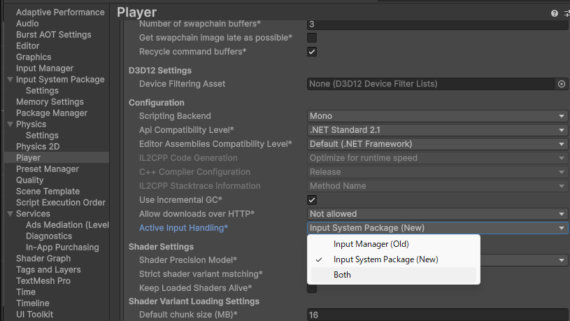 Unity Unity:【エラー】InvalidOperationException: You are trying to read Input using the UnityEngine.Input class, but you have switched active Input handling to Input System package in Player Settings.の対処法について Unity